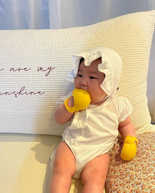 둥글둥글해서 눈이나 목찌름 걱정도 없고, 손에 쏘옥 들어가는 형태의 치발기라 손빠짐 걱정도 없어요!