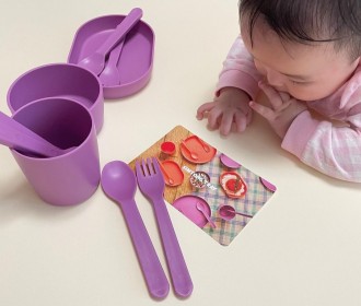 A purple simtong tray that captivated the baby's eyes!