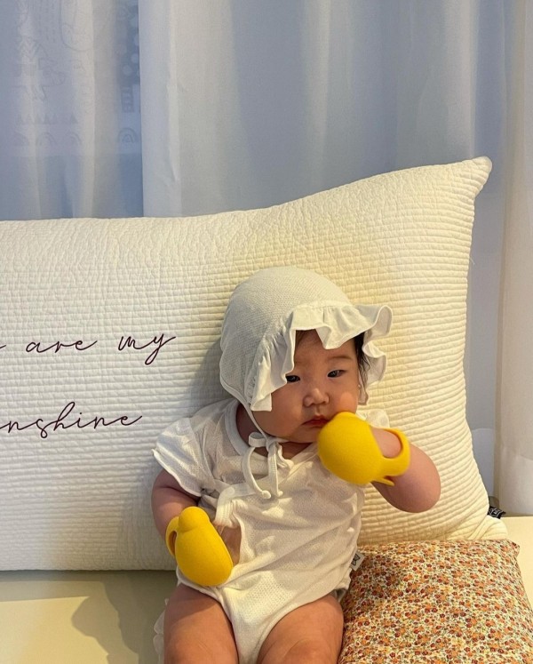 Babies wearing glove teether become cuter.